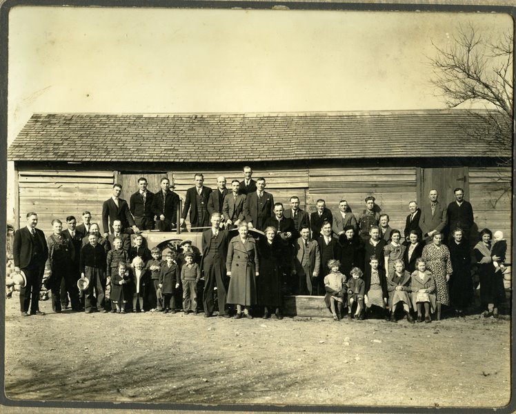 | HF-85-02-03 | Alexis D. Blanchett family | HF-85-02-03 | Alexis D. Blanchett & brothers and their families, taken at a family reunion in 1936 in Herington (made from a photo loaned by Frances (Mrs. Bert L.) Thompson) |