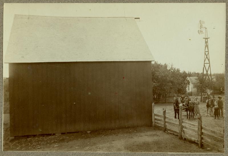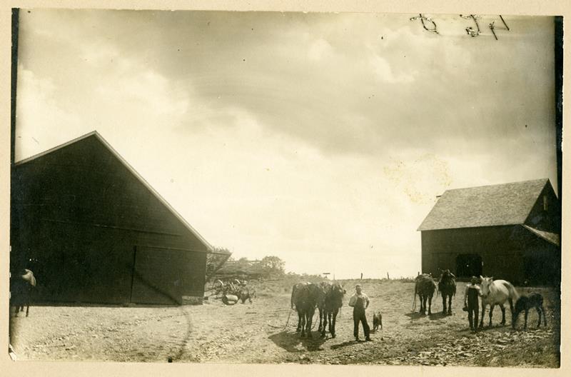 | SF-75-04-01 | Barnyard scene | SF-75-04-01 | Barnyard scene, 2 men with horses and a dog, shed and barn in the background |