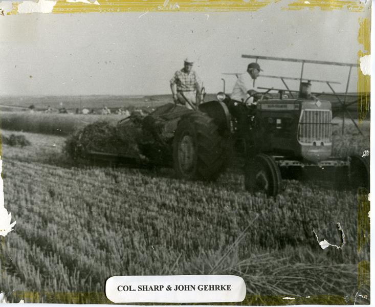 | No number | H. Sharp & John Gehrke binding wheat | Col. H. M. Sharp on the binder and John Gehrke on the tractor | |