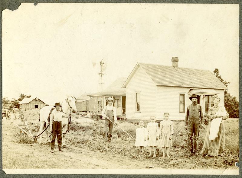 | SF-75-01-01 | Farm family, Man, wife, and 6 children | SF-75-01-01 | Farm family - man, horse & plow - man with rake - three small girls - man and wife with baby |