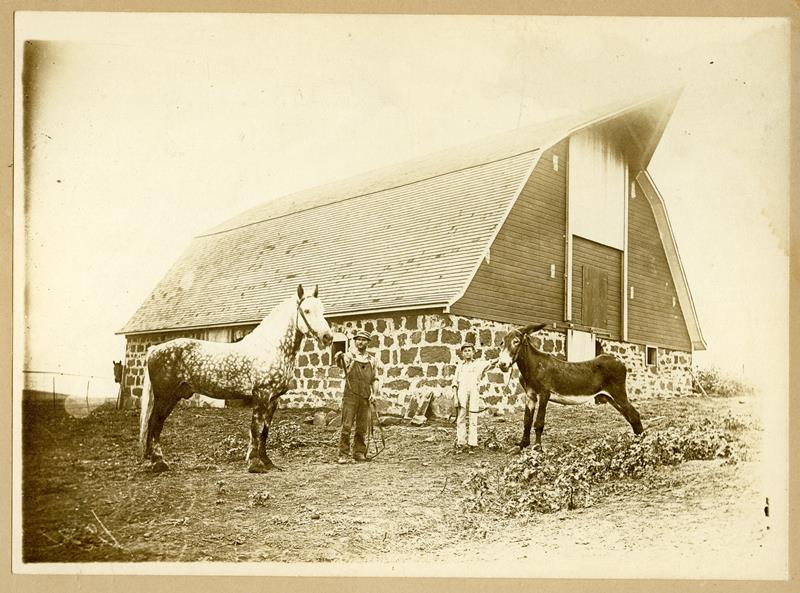 | SF-75-05-01 | Barn, Man & boy, Horse & mule | SF-75-05-01 | Barn background, Man holding a stallion, a boy holding a mule |