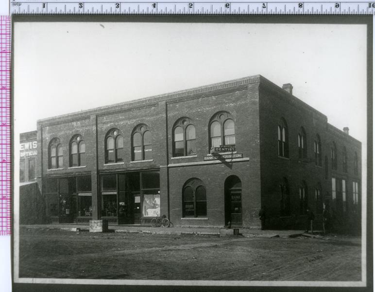 | No number | Bank of Herington | Camera Copy of original: Bank of Herington building at southwest corner of Broadway and Main. F.D. Carman's law office and Dr. Boyd's dentist office are visible in the upper level. | |