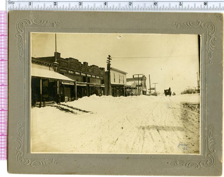 | H-80-09-01 | East Main Street 1912 Snowstorm | H-80-09-01 | Snow of 1912, East Main Street (looking East). Visible businesses are: U.S. Post Office, C.E. Shepherd and Co. Produce, C.E. Shepherd and Son Real Estate, Shoe Shop, Badger Lumber Yard, Savoy Hotel. |