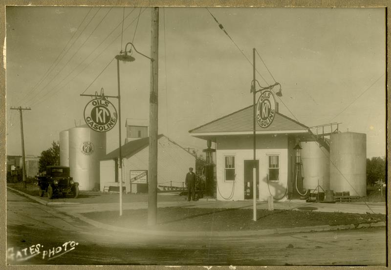 | HB-84-02-01 | K.T. Oil Company | HB-84-02-01 | Photo of K.T. Oil Company (Schump's filling station) located at East Main and "D" streets in about 1927. (Two copies of the Oil Company that are alike) |