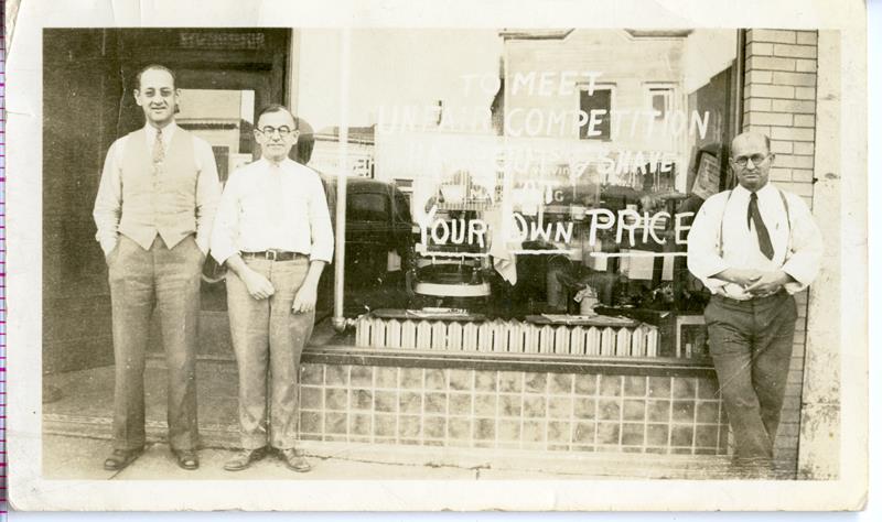 | HB-75-01-01 | Old Liggett Market | HB-75-01-01 | Old Liggett Market, W.B. Alward - Manager, Arthur Kelch - Butcher, Ladies Unknown |