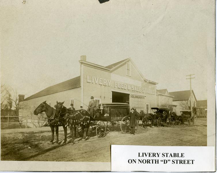 | No number | Livery, Feed & Sale Stable | Livery, Feed & Sale Stable on North "D" street. D.D. Longhofer. Dr. F. Elmer, veterinary surgeon and dentist. Horse & hearse and 2 horse & buggy. | |