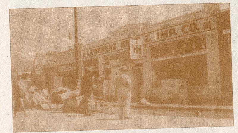 | No number | Lewerenz Implement Co after Lime Creek Flood | Newspaper clipping: Lewerenz Home & Implement Co. It appears this may have been taken after the 1951 Lime Creek flood | |