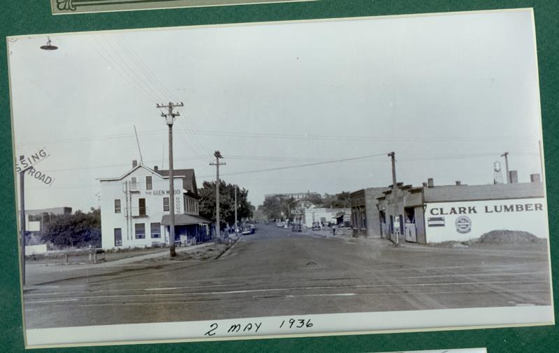 | No number | Glenwood Hotel and Clark Lumber | West Walnut St. looking East at the Rock Island Railroad crossing. To the left is the Glenwood Hotel and to the right is Clark Lumber Company. | |