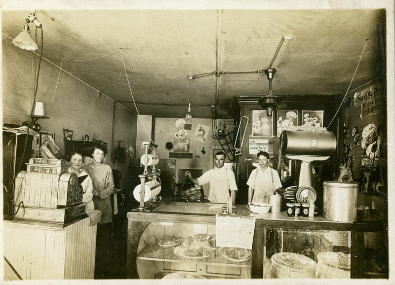 | Meyer Grocery | HB-77-02-01 | Meyer's Grocery West Main and first street. Mr. Meyers, Unknown, Helen Smith, and Mrs. Meyers. | |
