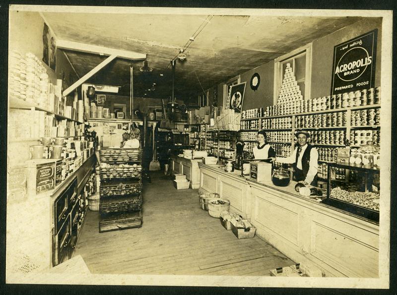 | HB-75-04-01 | Grocery store | HB-75-04-01 | Grocery Store (Back of photo says "Old Liggett"), people unknown |
