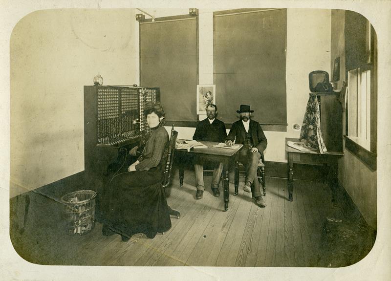 | HB-75-27-01 | Herington's Mutual Telephone Office | HB-75-27-01 | Herington's Mutual Telephone Office, Gladys Stevenson - Operator, Two men unknown |