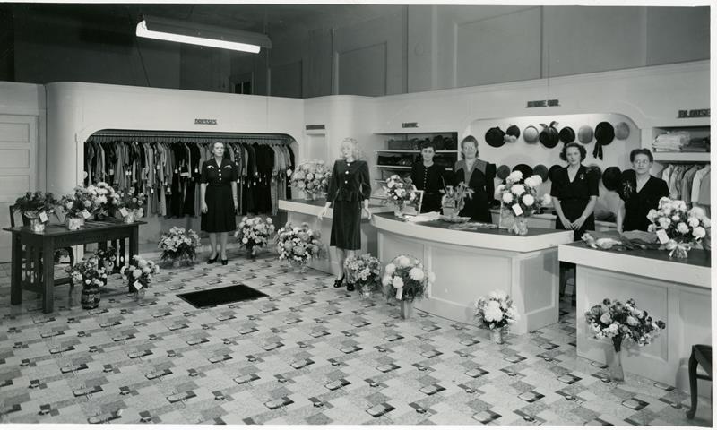 | HB-76-01-01 | Betty's Dress Shop | HB-76-01-01 | Betty's (Betty Chandler) dress shop. Women in photo are: 1: Betty Chandler (Mrs. Dewey Chandler), 2: Nettie Cultra Jones (2 copies of photo) |