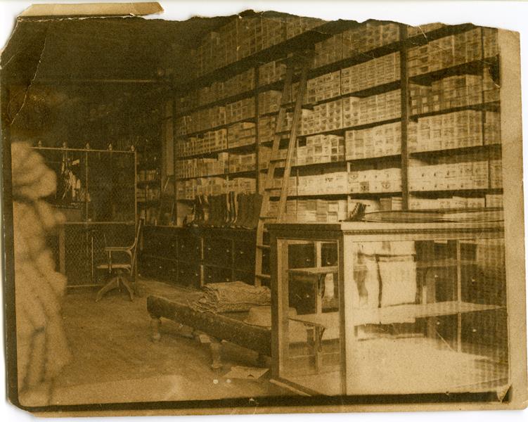 | Drug Store | HB-76-07-01 | H.C. Kandt's drug store. H.C. Kandt in rear of store. One person on each side of store | |