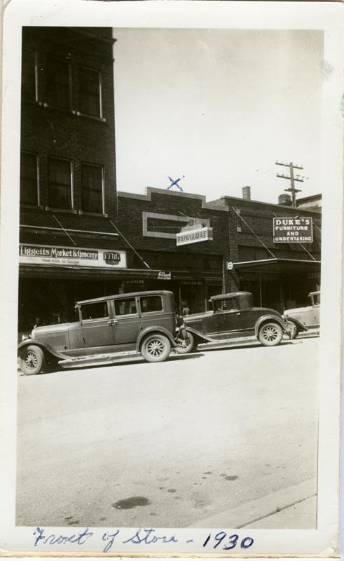 | New Liggett Market | HB-75-02-01 | New Liggett Market & Grocery, Harry Liggett, Don Michler, Mrs. L.D. Moore (Jimmie Dunn) | |