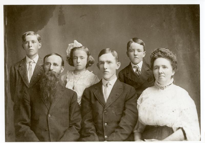 | HI-91-23-03 | William H Harrison family | HI-91-23-03 | Front: Dr. William H. Harrison(father), A. Eugene Harrison, Calle Dona Harrison(Mother); Back: G. Clayton Harrison, Phebe C. Harrison, Alvie Brooks Harrison |